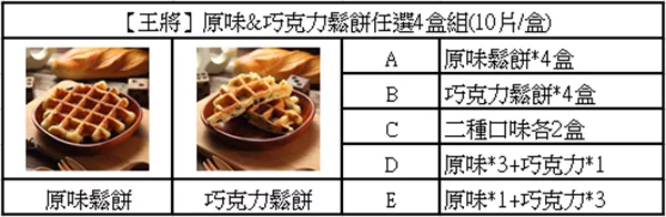 你在找【王將】原味和巧克力鬆餅任選4盒組(10片-盒)A哪裡買嗎?